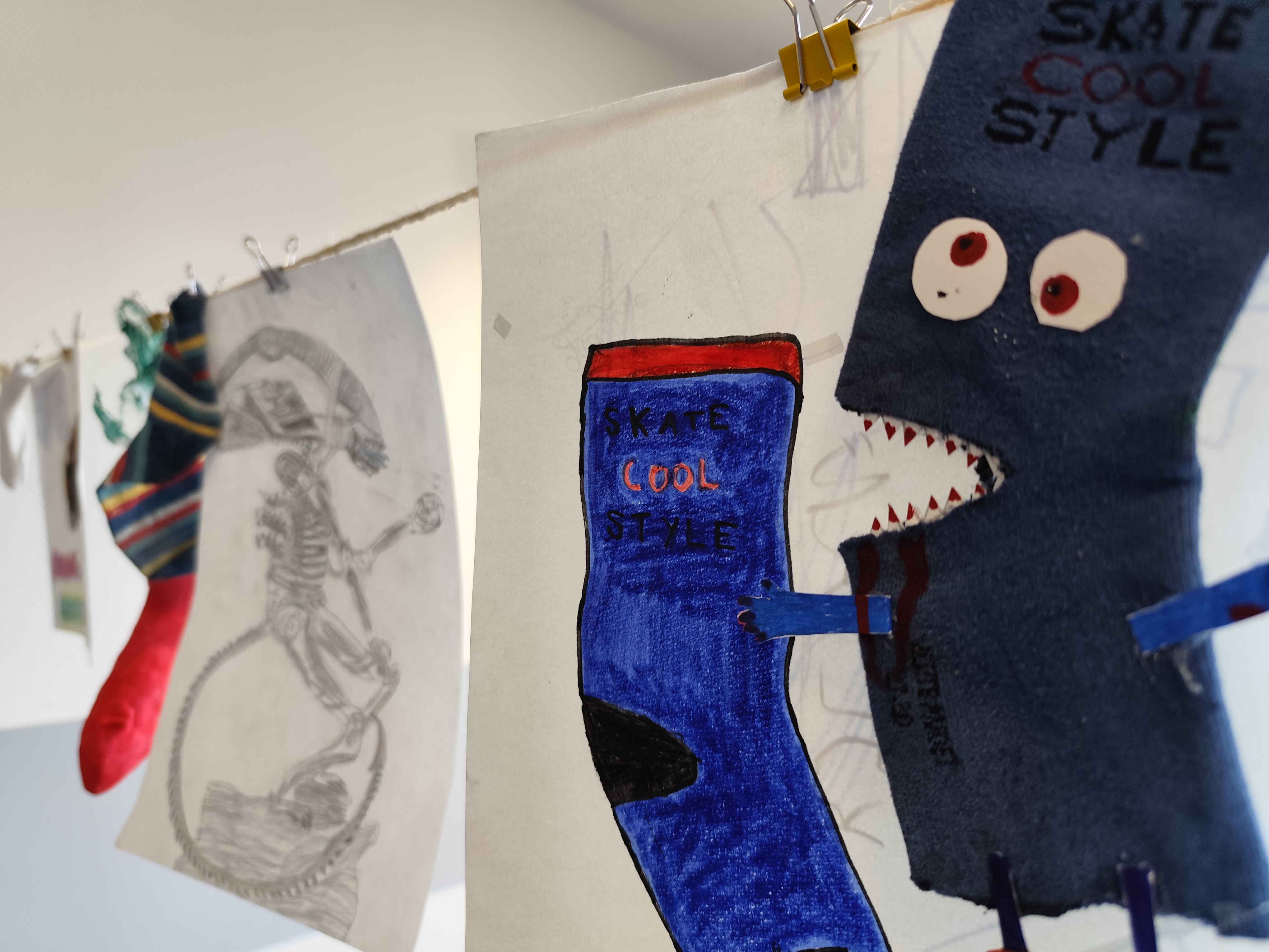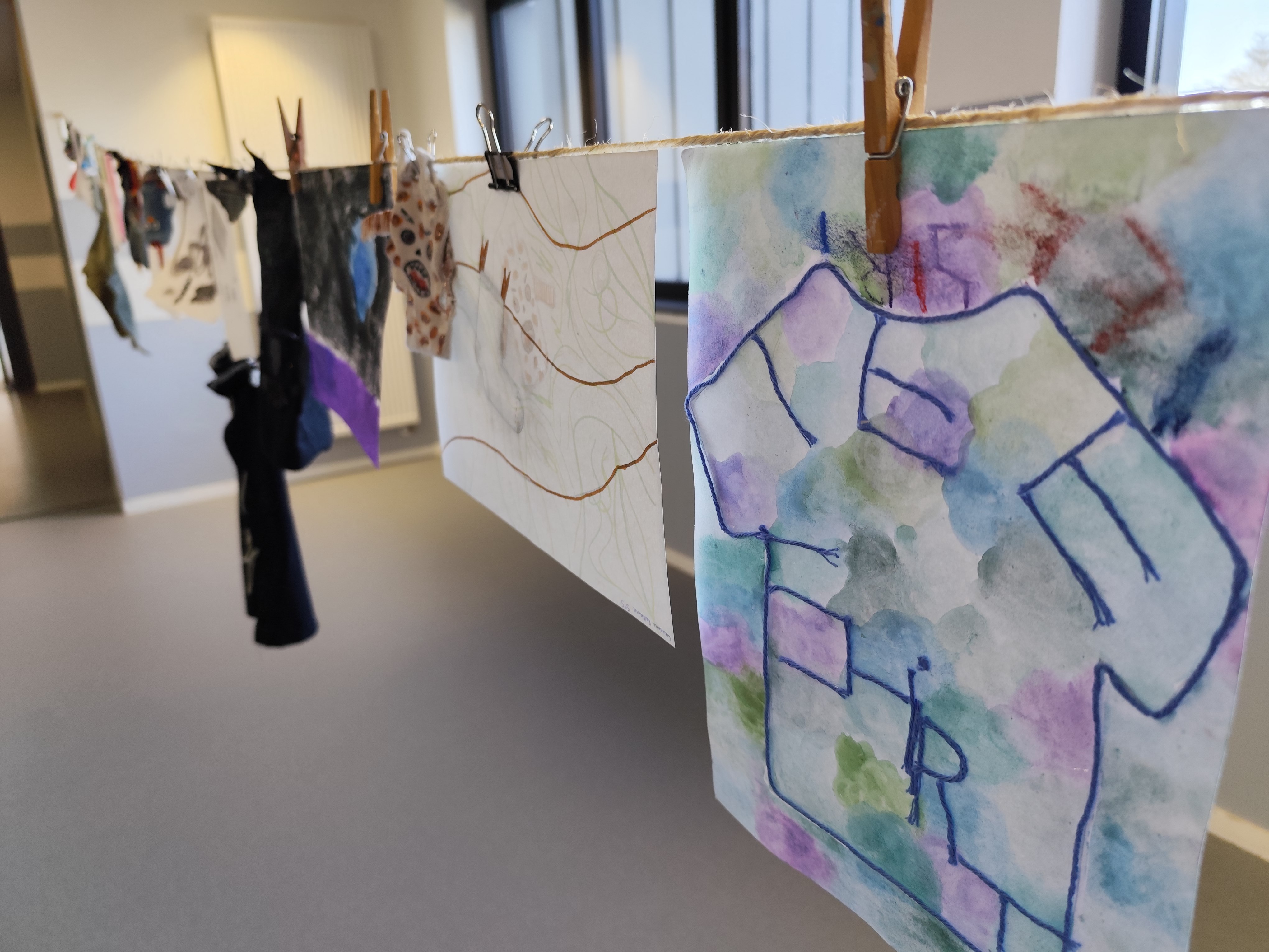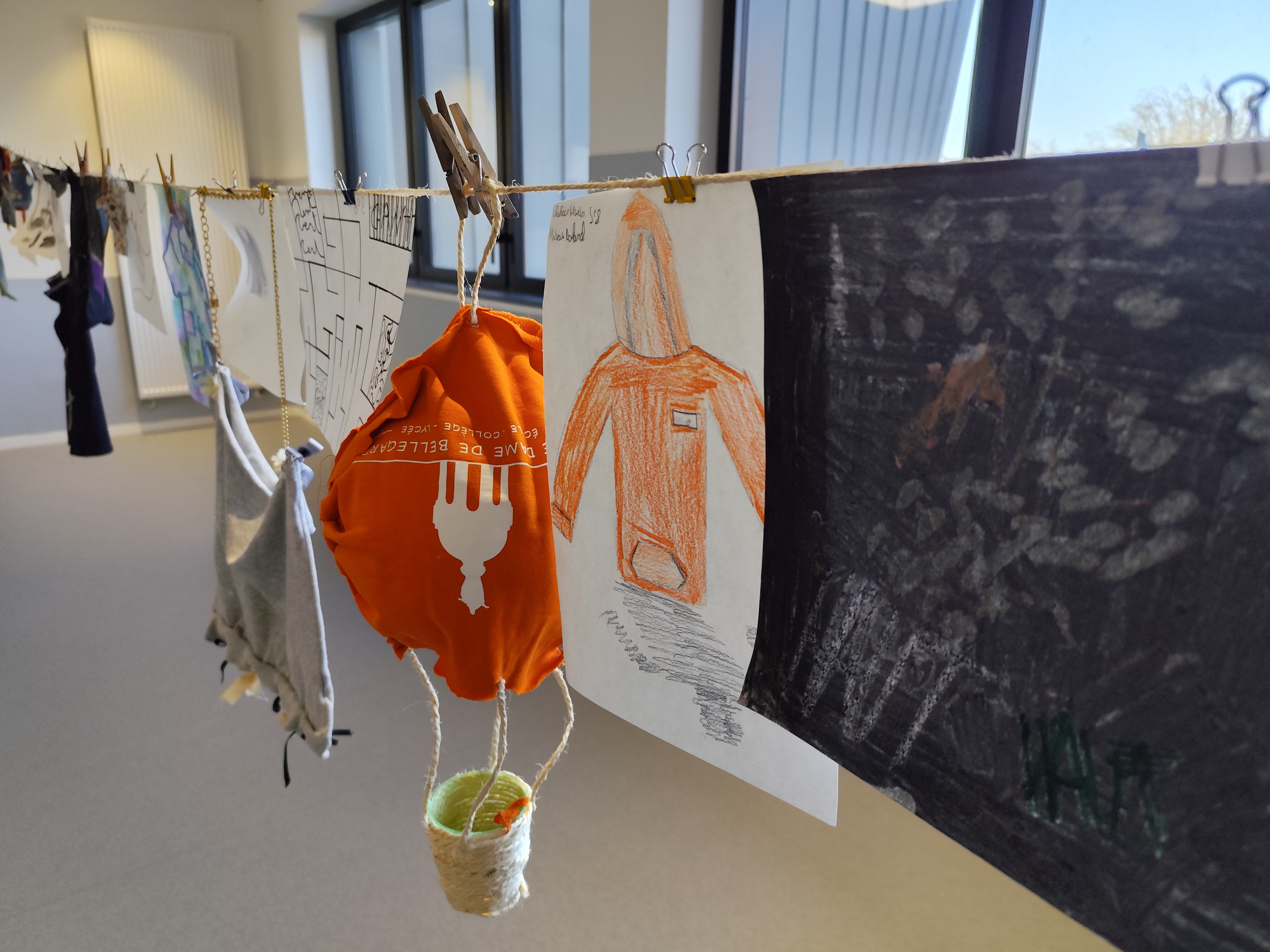 Les réalisations sont visibles au 1er et au second étage pour quelques jours. Courrez vite voir ce drôle d'étendage!